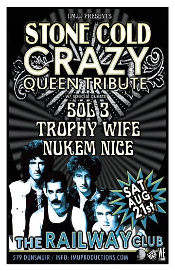 . Saturday, August 21st IMU presents STONE COLD CRAZY Queen Tribute w/ TROPHY WIFE, SOL 3 & NUKEM NICE @ The Railway Club, 579 Dunsmuir . Doors 9pm / Cover $12 @ the door