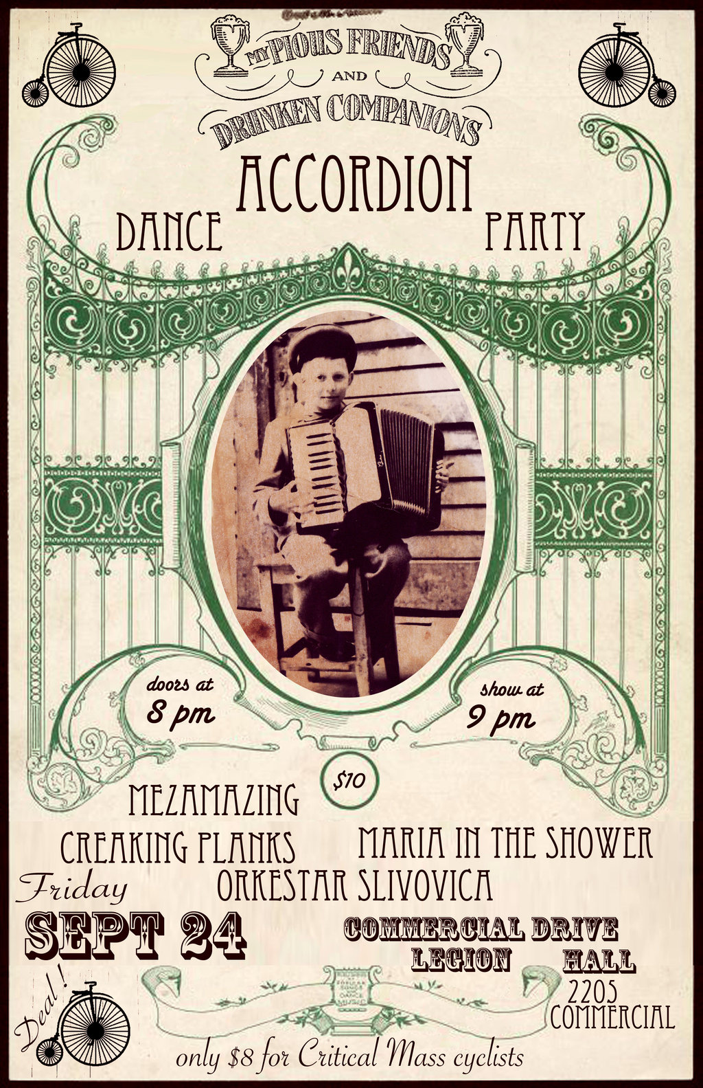 Mezamazing, maria in the shower, Orkestar  Šlivovica , The Creaking Planks @ Commercial Drive/Grandview Legion Hall Sep 24 2010 - Jan 11th @ Commercial Drive/Grandview Legion Hall