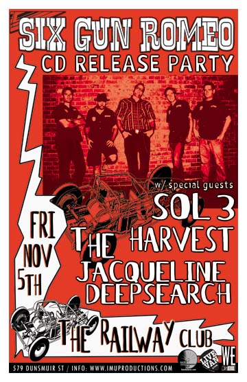 SIX GUN ROMEO is a melting pot of riffs, beats, runs and melodies taking many different styles of music as their influences. From the legend of Johnny Cash to the totally hot sensation of Imelda May, the band's sole aim is to get you off your butt and to throw some incredible shapes on the dance floor. [11pm] http://www.myspace.com/sixgunromeo