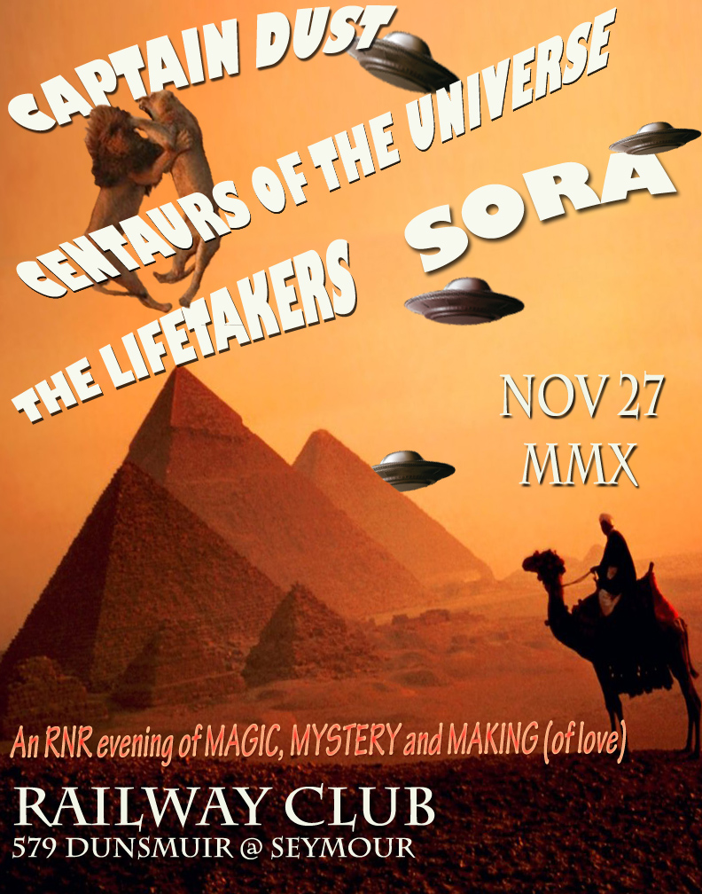 Late show:: Captain Dust, Centaurs of the Universe, THE LIFETAKERS, SORA @ Railway Club Nov 27 2010 - Feb 12th @ Railway Club