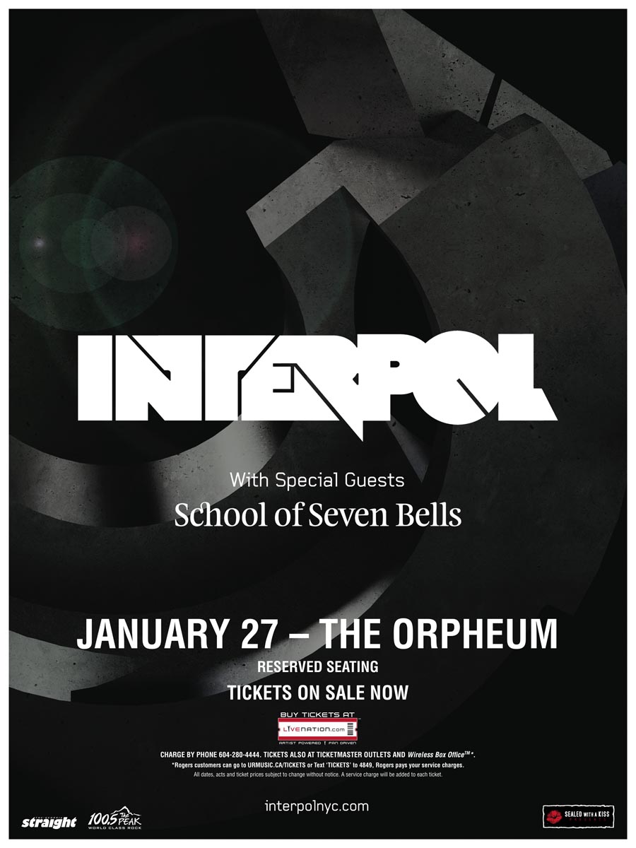 100.5 The Peak and The Georgia Straight present: Interpol, School of Seven Bells @ The Orpheum Jan 27 2011 - Jan 3rd @ The Orpheum