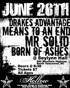 Drakes Advantage, Means to an End, Mr. Solid, Born of Ashes @ Seylynn Hall Jun 26 2004 - Jan 5th @ Seylynn Hall