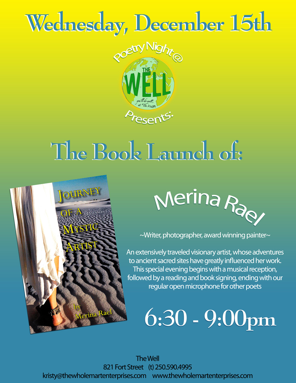 Live music starting at 6:30pm with local author's book launch and poetry reading...