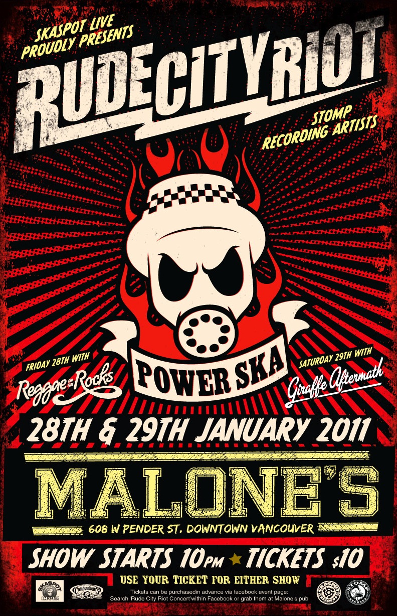 Rude City Riot brings their Power-Ska sound to the downtown city core on Friday Jan 28 & Sat Jan 29th. If you buy tix in advance, you can use them for either day depending on your personal schedule. Special Guests are Giraffe Aftermath on Sat. and Reggae On the Rocks on Friday Jan 28th. RCR will be playing new songs from their upcoming album release on Stomp Records.