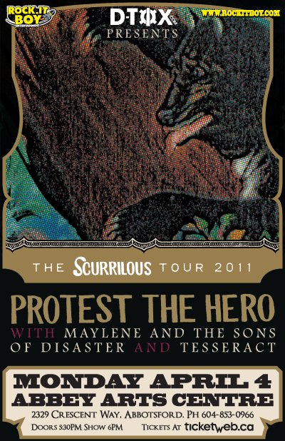 THE SCURRILOUS TOUR 2011: Protests The Hero, Maylene And The Sons Of Disaster, TesseracT @ Abbotsford Arts Center Apr 4 2011 - Feb 12th @ Abbotsford Arts Center