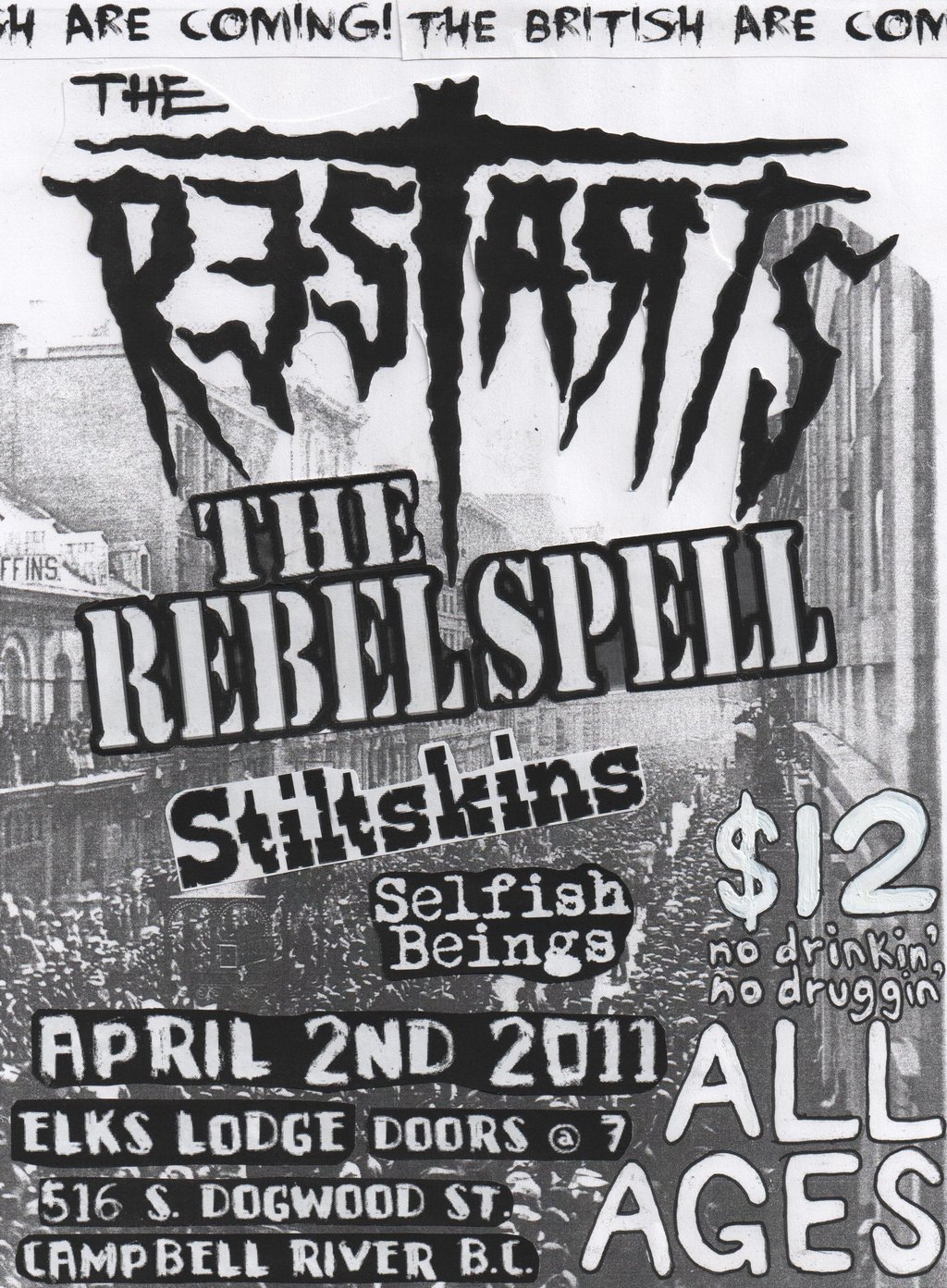 The Restarts, The Rebel Spell, stiltskins, Selfish Beings @ Elks Lodge Apr 2 2011 - Jan 5th @ Elks Lodge