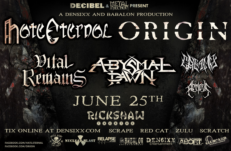 Hate Eternal/Origin Co-headline Tour 2011: Hate Eternal, Origin, Vital Remains, Abysmal Dawn, Galgamex, Abriosis @ Rickshaw Theatre Jun 25 2011 - Feb 13th @ Rickshaw Theatre