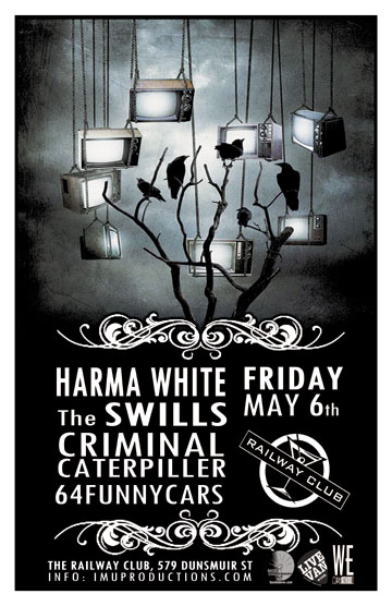 . Friday, May 6th IMU presents HARMA WHITE, The SWILLS, CRIMINAL CATERPILLER & 64FUNNYCARS @ The Railway Club, 579 Dunsmuir . 9pm / $10 cover @ the door
