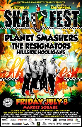 Get ready for a show of epic proportions when Victoria BC Ska Society proudly presents yet another Skankster's Paradise at Victoria's 12th Annual Ska Festival. We are extremely happy to be back at Market Square for this most special event when Stomp Records' THE PLANET SMASHERS - Canada's kings of ska grace the Victoria Ska Festival stage alongside Australia's The Resignators and Victoria's own Hillside Hooligans!