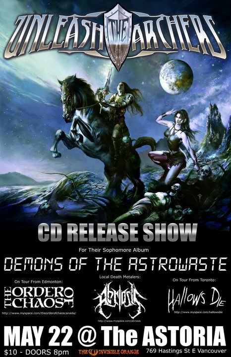 Unleash The Archers CD Release Show!!!: Unleash The Archers, The Order of Chaos , Abriosis, Hallows Die @ The Astoria  May 22 2011 - Jan 10th @ The Astoria