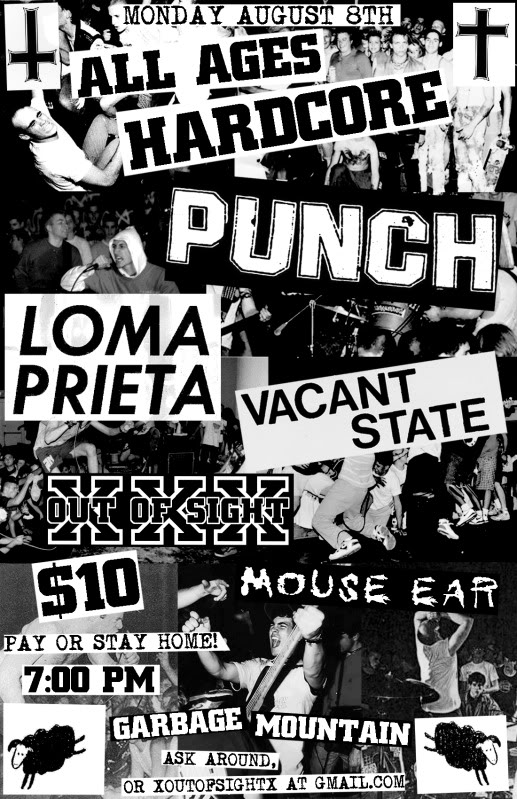 Punch, Loma Prieta, Vacant State, Damages, Out of Sight @ garbage mountain Aug 8 2011 - Feb 24th @ garbage mountain