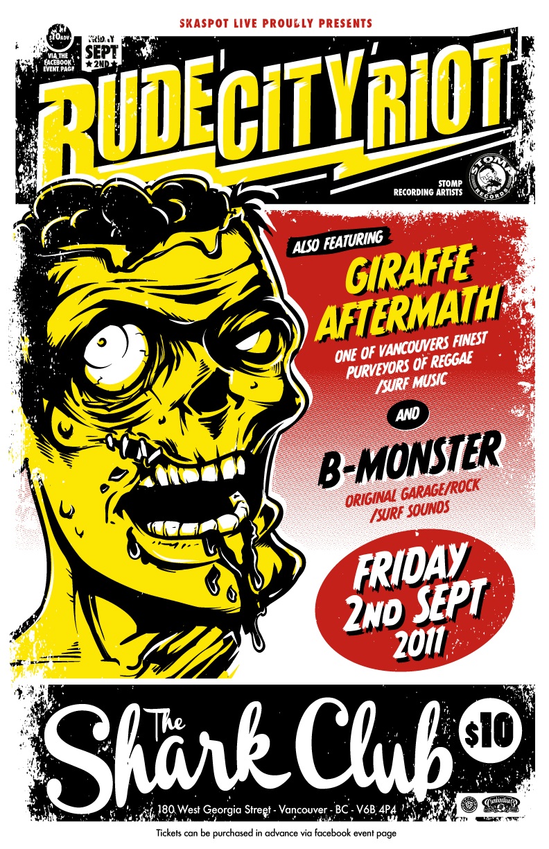 Three great bands - Rude City Riot, Giraffe Aftermath and B-Monster are gonna rock the Shark Club on Fri Sept 2nd. This is a great mix of Reggae, Ska and Rock music that is bound to have you up dancing all night long. Punk Rock a billy Surf tunes to get you started right.