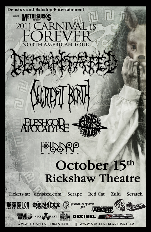 Carnival Is Forever Tour featuring Decapitated: Decapitated, Decrepit Birth, Fleshgod Apocalypse, Rings Of Saturn @ Rickshaw Theatre Oct 15 2011 - Feb 12th @ Rickshaw Theatre