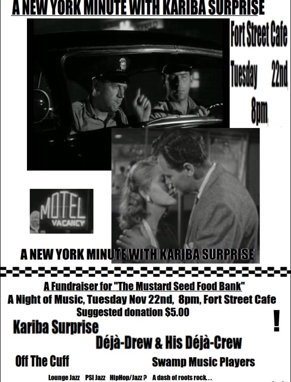A New York Minute with Kariba Surprise: Kariba Surprise, Déjà-Drew & His Déjà-Crew, Off The Cuff, Swamp Music Players @ The Fort Cafe Nov 22 2011 - Feb 21st @ The Fort Cafe