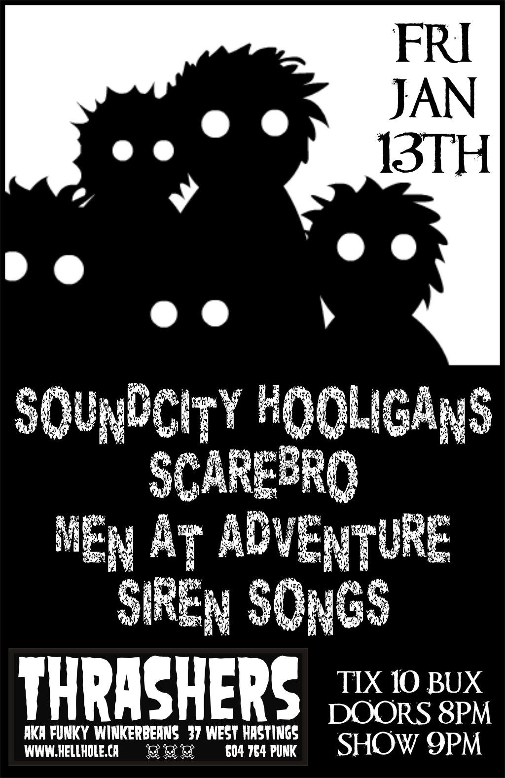 SoundCity Hooligans, Scarebro, Men At Adventure, Siren Songs @ Funky Winker Beans Jan 13 2012 - Feb 12th @ Funky Winker Beans