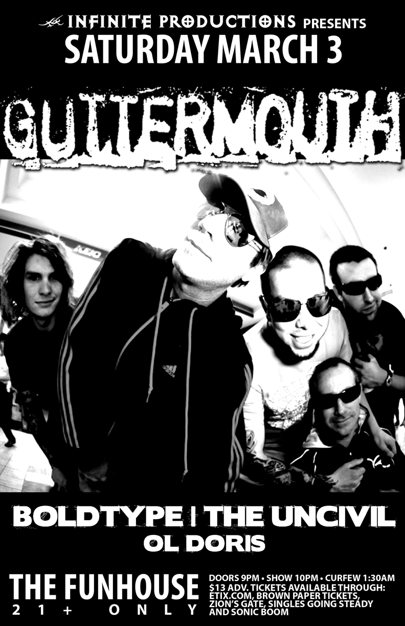 Guttermouth, The Uncivil, Boldtype, Ol' Doris @ The Funhouse Mar 3 2012 - Feb 11th @ The Funhouse