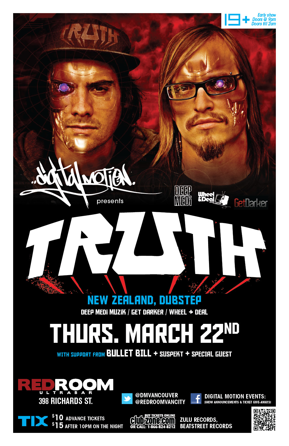 Digital Motion Events Presents: TRUTH - New Zealand, Dubstep @ The Red Room Mar 22 2012 - Jan 7th @ The Red Room