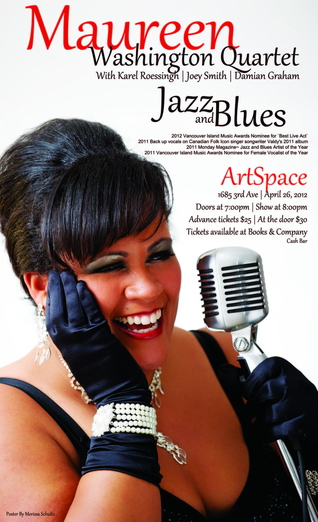 Maureen Washington is on the move, and her fans and jazz lovers in Prince George should be overjoyed. Washington and her entourage Karel Roessingh ~ Piano, Joey Smith ~ Bass, Damian Graham ~ Drums & Percussion, will be at ArtSpace Thursday April 25th