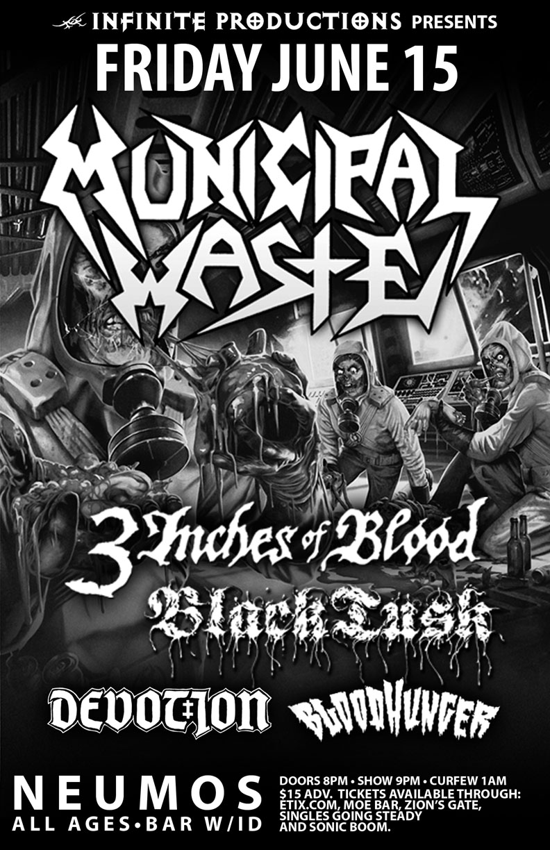 Infinite's 25th Anniversary with: Municipal Waste, 3 Inches Of Blood, Black Tusk, Devotion, Bloodhunger