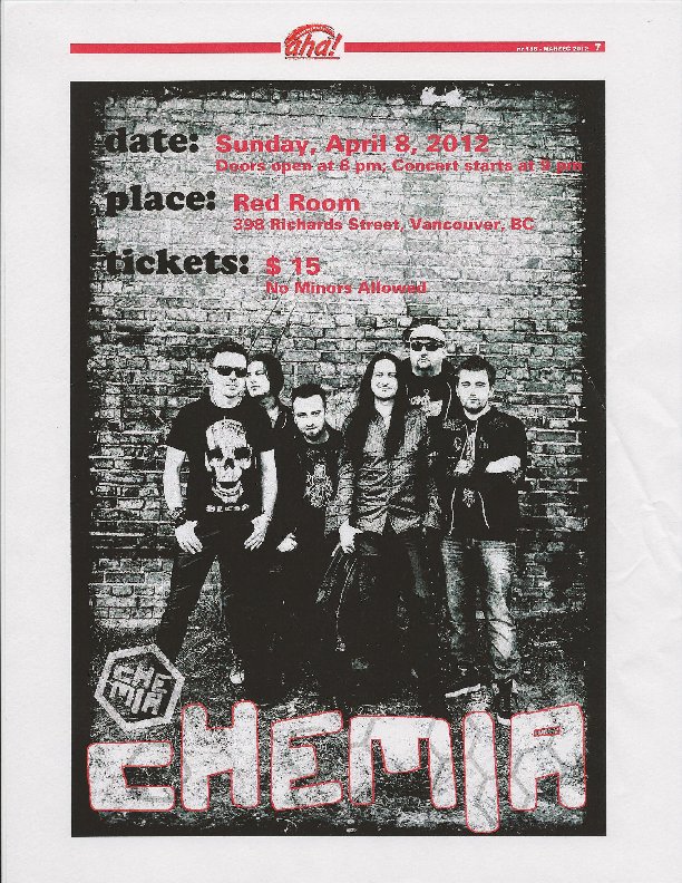 Sun. April 8th 2012 The Red Room Vancouver BC $15
