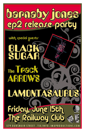 . Friday, June 15th IMU presents BARNABY JONES EP Release Party w/ special guests BLACK SUGAR, LAMONTASAURUS & The TRACK ARROWS @ The Railway Club, 579 Dunsmuir . Doors 9pm / Purchase advance tickets online @ http://www.imuproductions.com/tix