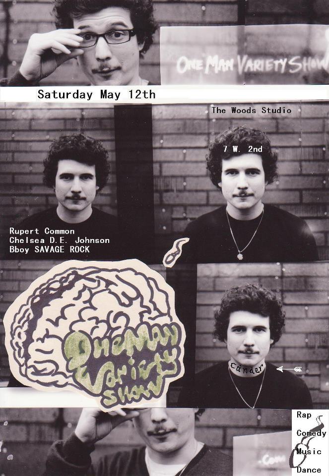 One Man Variety Show:, Rupert Common, CHELSEA JOHNSON, Savage Rock @ The Woods Studio May 12 2012 - Feb 20th @ The Woods Studio