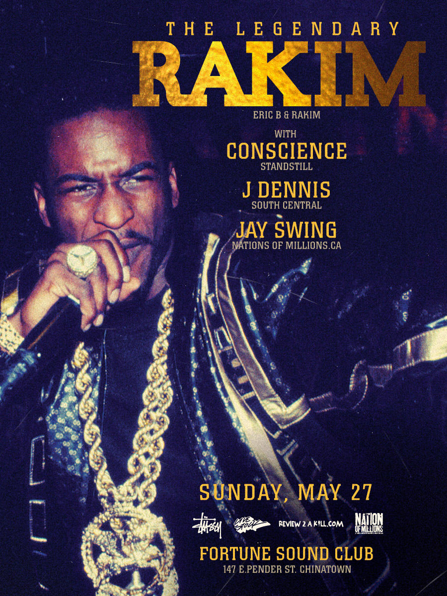 ***Rakim has opted not to honour any of his remaining Canadian tour dates.*** All tickets can be refunded at their original point of purchase. Again, on behalf of Fortune Sound Club, Gman & Rizk and Nation Of Millions we apologize for any inconvenience this may have caused.