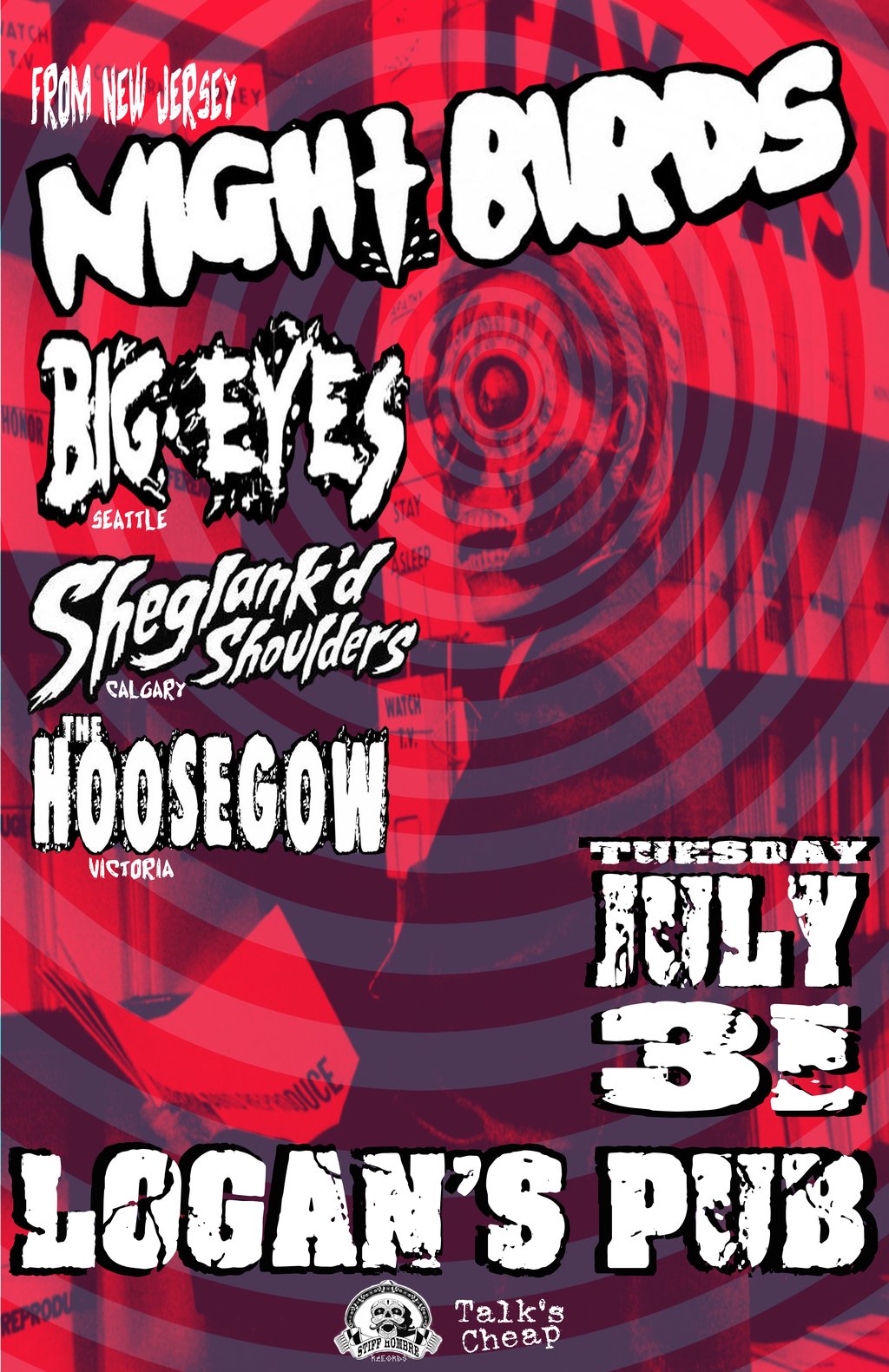Filling out the bill are Calgary's skate spazz legends Sheglank'd Shoulders and locals The Hoosegow.