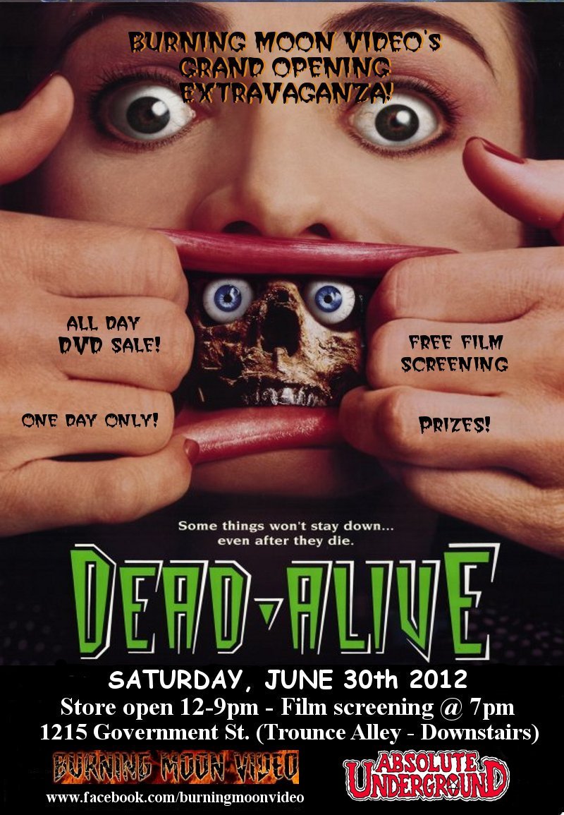 Absolute Underground & Burning Moon Video present a special one-time screening of Peter Jackson's over-the-top epic, DEAD ALIVE! This is the goriest, bloodiest, most outrageous zombie film ever made!