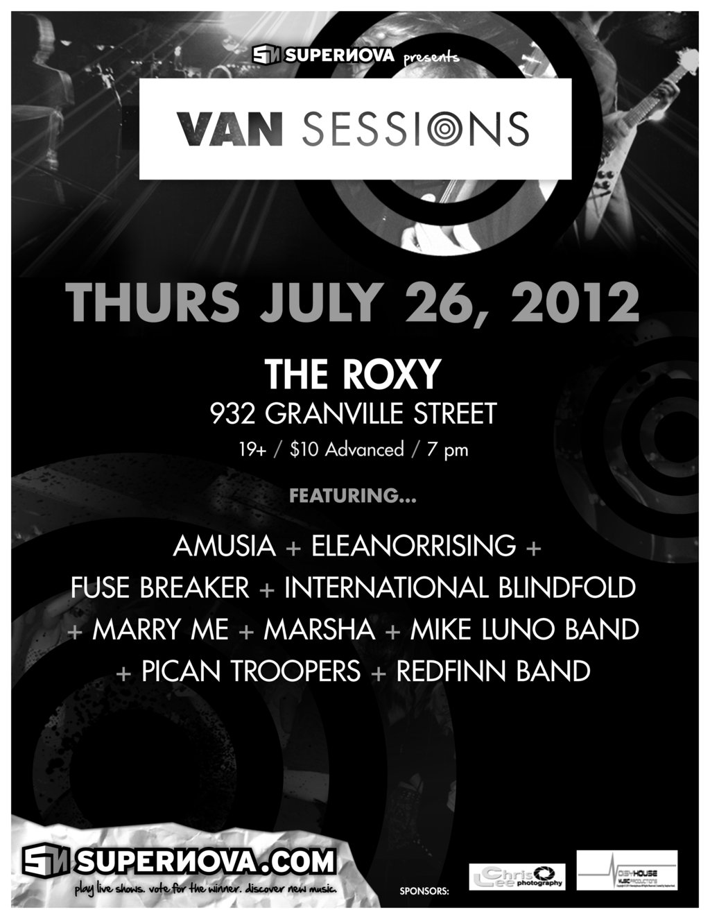 Van Sessions: Mike Luno Band, Eleanor Rising, Fuse Breaker , International Blindfold, Marry Me, Marsha, Pican Troopers, RedFinn Band @ The Roxy Jul 26 2012 - Feb 11th @ The Roxy