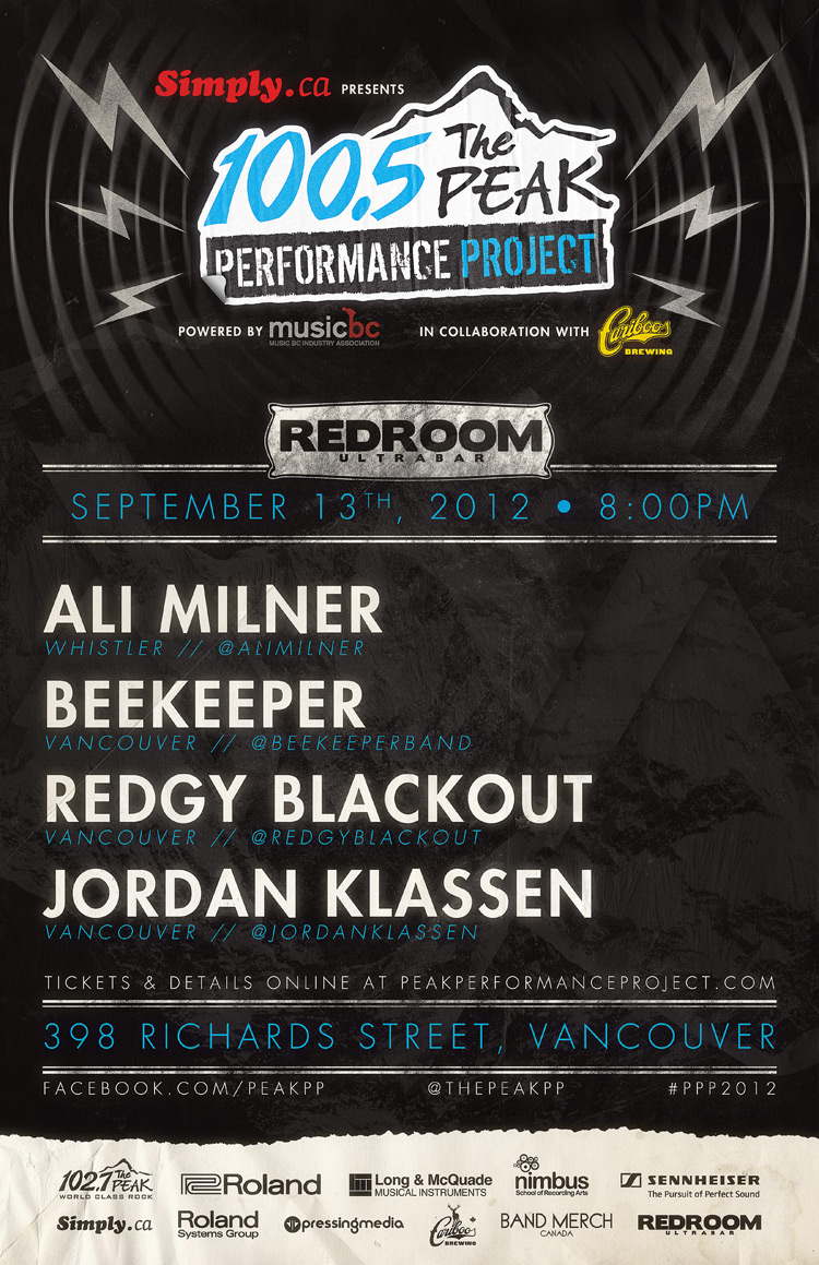 SIMPLY.CA PRESENTS - 100.5 THE PEAK PERFORMANCE PROJECT NIGHT #1 Powered by Music BC in Collaboration with Cariboo Brewing: Ali Milner, beekeeper, Redgy Blackout, Jordan Klassen