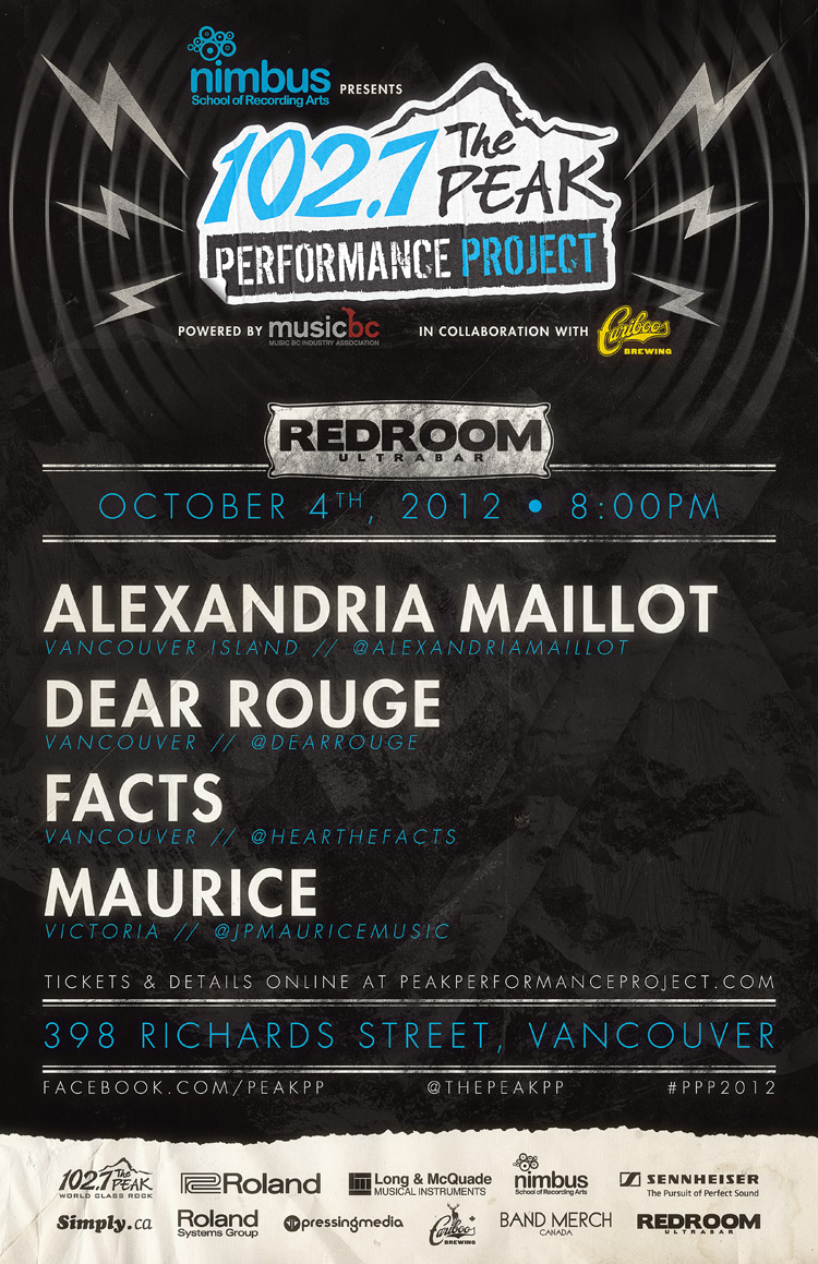 NIMBUS (SCHOOL OF RECORDING ARTISTS) PRESENTS 100.5 THE PEAK PERFORMANCE PROJECT NIGHT #3 Powered by Music BC & in Collaboration with Cariboo Brewing Featuring: Alexandria Maillot, Dear Rouge, FACTS, Maurice