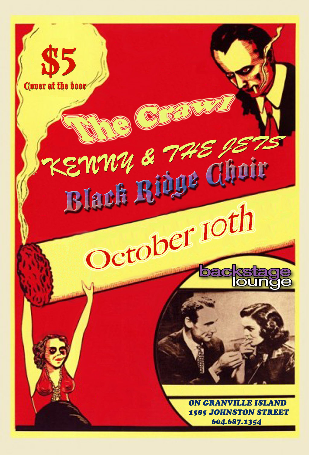The Crawl, Kenny and the Jets, Black Ridge Choir @ Backstage Lounge Oct 10 2012 - Jan 8th @ Backstage Lounge