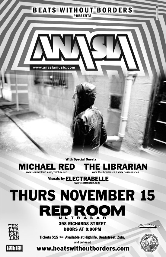 BEATS WITHOUT BORDERS PRESENTS: ANASIA , Michael Red, The Librarian @ The Red Room Nov 15 2012 - Feb 13th @ The Red Room