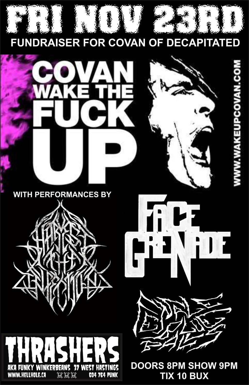 BENEFIT FOR COVAN FROM DECAPITATED: WHAT THE DEVIL?, Harvest The Infection, FACE GRENADE, Female Blue Balls @ Funky Winker Beans Nov 23 2012 - Feb 20th @ Funky Winker Beans