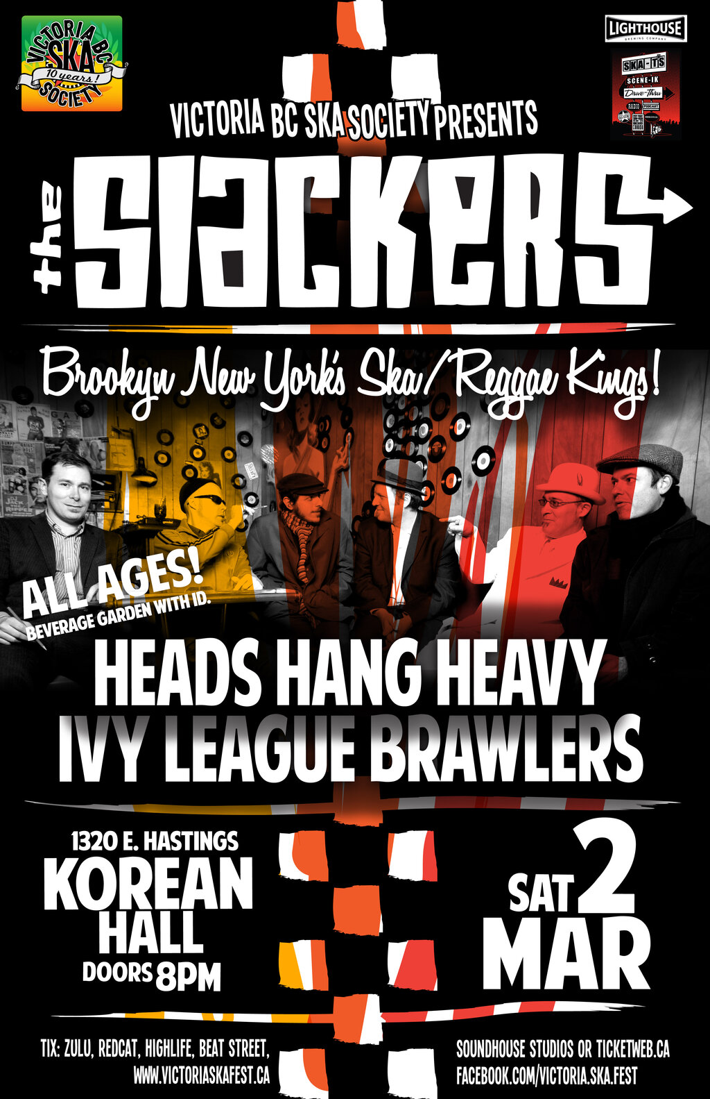 The Slackers - Brooklyn's ska/reggae kings return to Vancouver to do an all ages show (with licensed beverage garden) at the Hungarian Hall. This will be the first all ages show since their epic appearance at The Rickshaw Theatre in 2009. The Slackers have become a ska/reggae institution throughout the world and in the 13 years that they've been coming to Vancouver, the ska/reggae massive always is happy to greet them with open arms. No matter what age you are you can come and enjoy this long-awaited all ages extravaganza.
