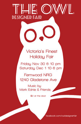 The Owl Designer Fair is Victoria's most creative holiday fair. All items are handmade or upcycled by local artists and designers. Live music with local musicians and unique gifts make this show a must for anyone looking for some style in the Christmas shopping.