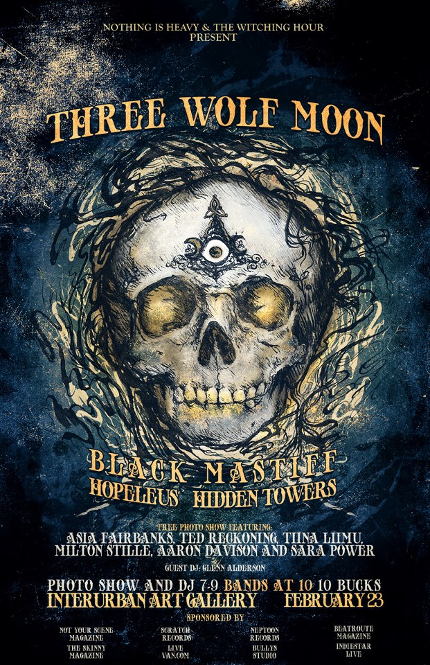 Three Wolf Moon, Black Mastiff, Hidden Towers, Hopeleus @ Interurban Gallery Feb 23 2013 - Feb 12th @ Interurban Gallery