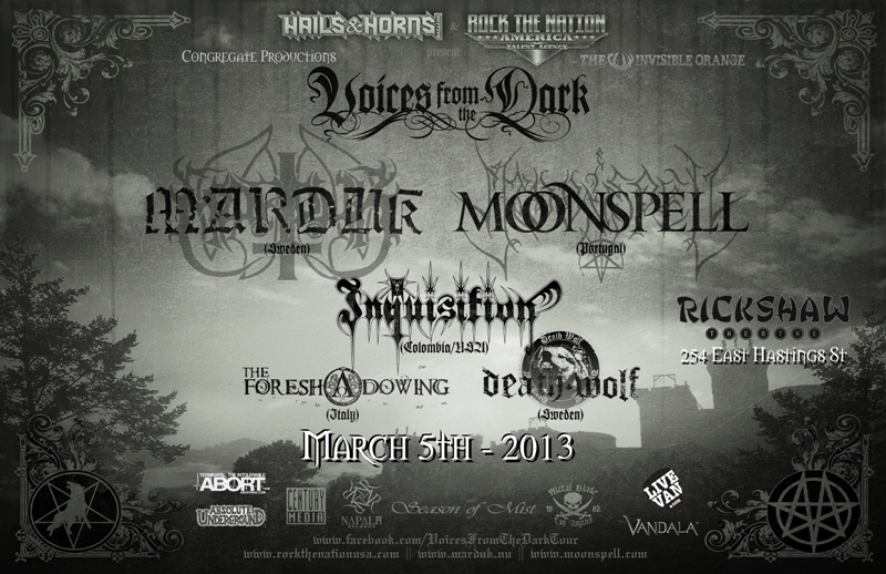 MARDUK, Moonspell, Inquisition, The Foreshadowing, Death Wolf @ Rickshaw Theatre Mar 5 2013 - Feb 20th @ Rickshaw Theatre