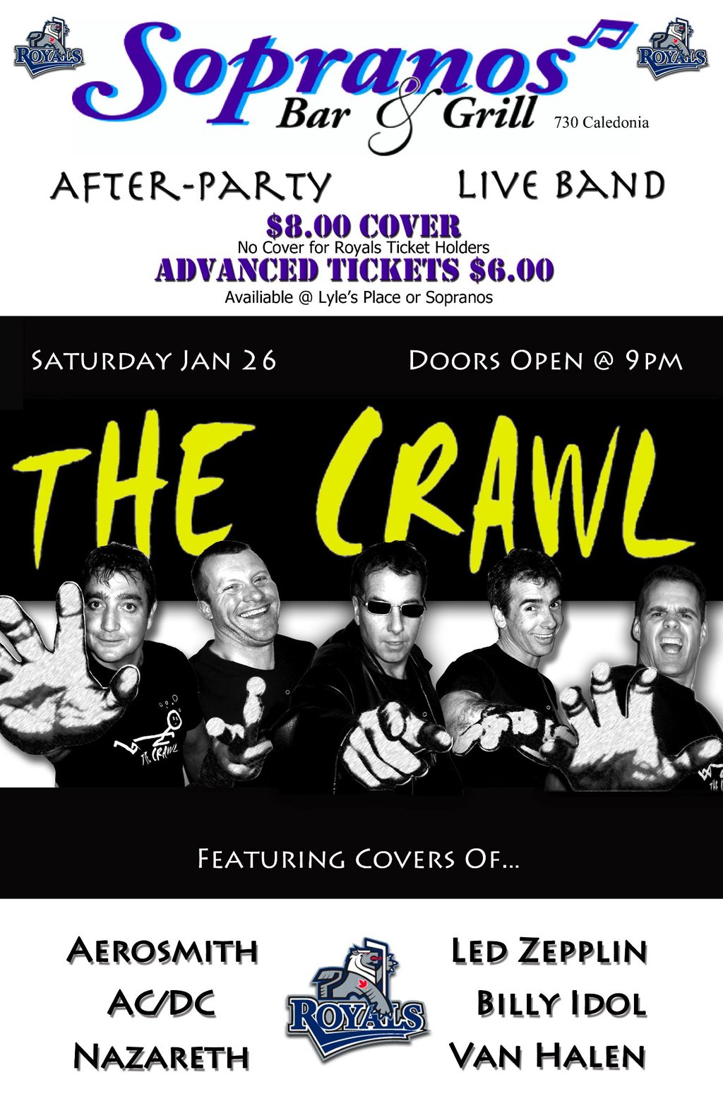 Tickets $6 advance at Lyle's Place, Sopranos or free entry to the after party with your game ticket.