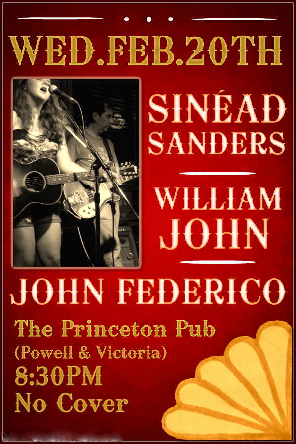 Sinéad Sanders, William John, John Federico @ Princeton Pub Feb 20 2013 - Feb 15th @ Princeton Pub