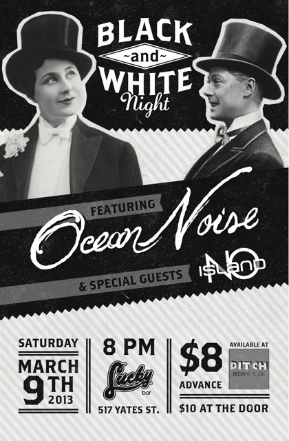 Black and White Night at Lucky Bar: Ocean Noise, No Island @ Lucky Bar Mar 9 2013 - Feb 26th @ Lucky Bar