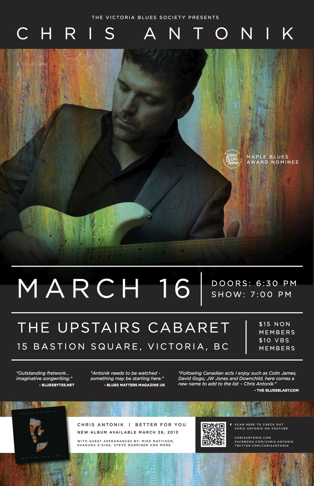 Sat. March 16th 2013 The Upstairs Cabaret Victoria BC $10-$15