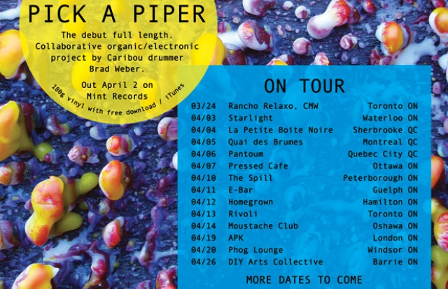 Overseen, produced, and recorded by Caribou’s Brad Weber, Pick a Piper is his collaboration with Angus Fraser, Dan Roberts, and others. Over the course of two EPs and a forthcoming album, the project has combined dance-music structures, a palette evocative of the natural world, and an increasingly heavy focus on electronics and production technique to create a sound poised between the organic and the synthetic.