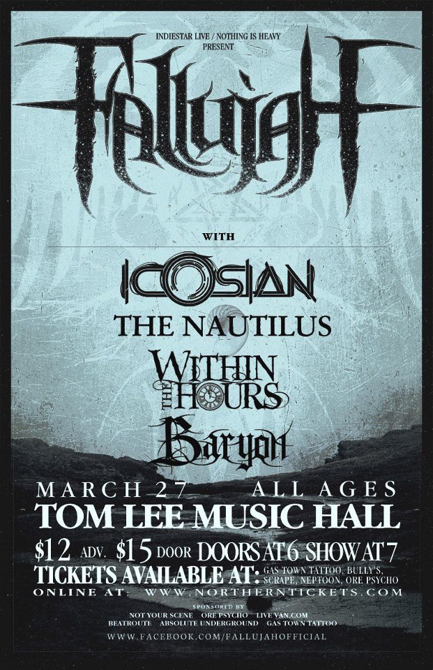 Fallujah, Icosian, The Nautilus, Within The Hours, Baryon @ Tom Lee Music Hall Mar 27 2013 - Jan 10th @ Tom Lee Music Hall