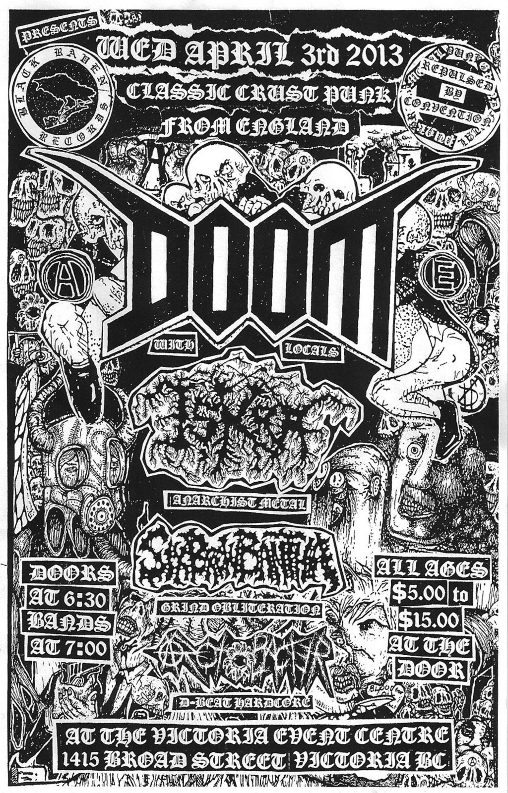Legendary Crust-Punk from the UK!! All Ages Punk, Metal, Grind!: Doom (UK), ISKRA, SIX BREW BANTHA, Azotobacter @ Victoria Event Centre Apr 3 2013 - Feb 13th @ Victoria Event Centre