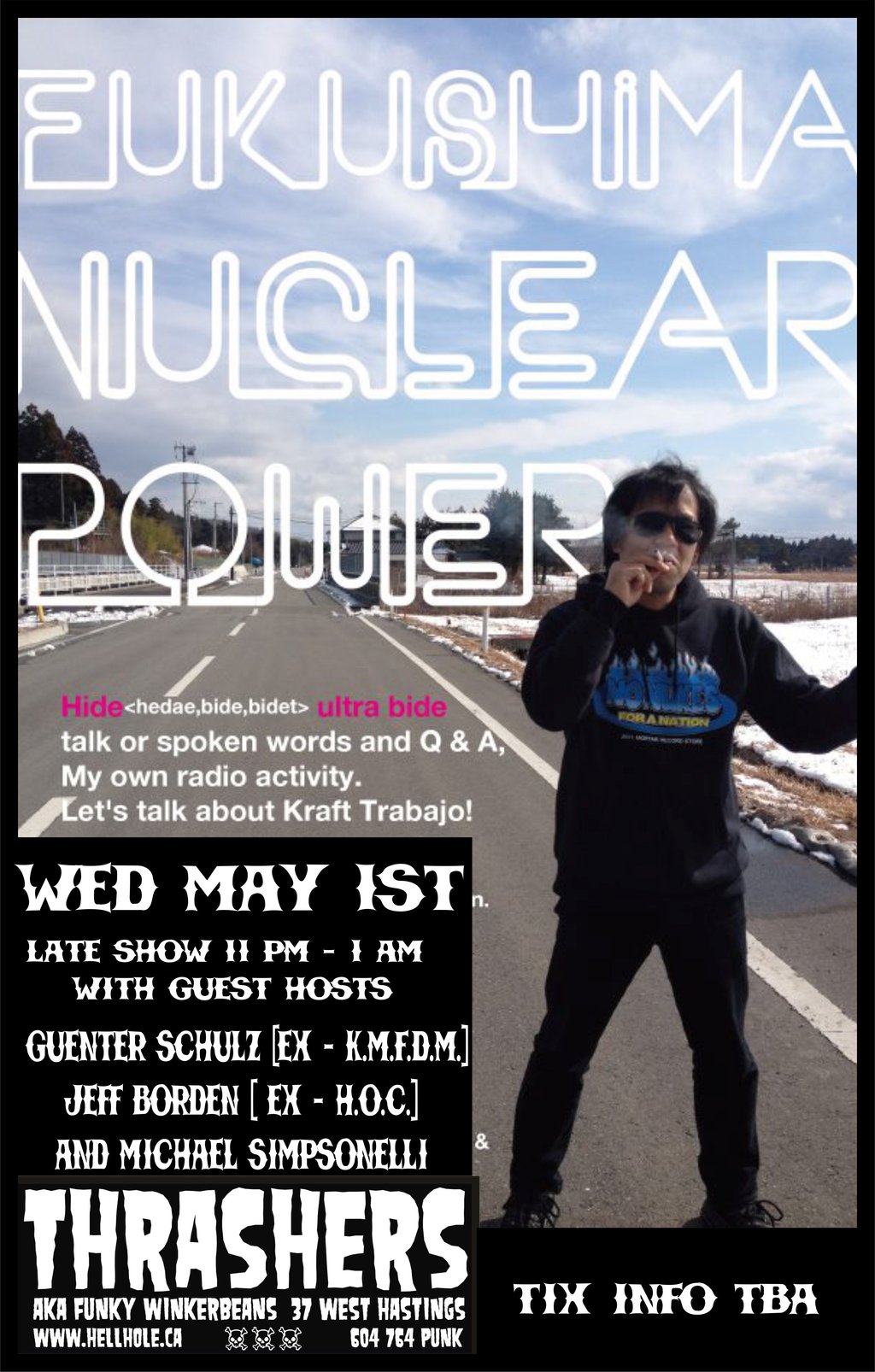 may 1st (wed) at FUNKYS. Vancouver, BC. CANADA. co-host Guenter Schulz (Former - KMFDM), Jeff Borden (Former - House of Commons) and Michael Simpsonelli.
