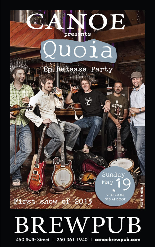 Releasing some new songs, Quoia {Kwoi - a} is a collective of musicians currently residing on Vancouver Island, British Columbia. Quoia is a band known for their high-energy liveshow and uplifting grooves. Their music is a perfect blend of originality and accessibility, and the lyrics are clear, considered and meaningful. They perform a dynamically entertaining show with a tightness and style possible only through years of focused playing. Quoia focuses their live energy with genre-hopping sounds and a stage presence that always has fans dancing and singing along.