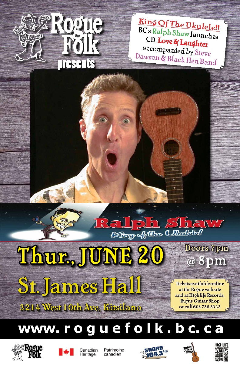 If you've ever seen Ralph Shaw you'll know he is an unparalleled showman with a knack for engaging an audience. His music has been described as hilarious, inspirational, outrageous, touching, and thought provoking. See him perform original songs from his two new albums (produced by multi-award winner Steve Dawson) accompanied by some of Vancouver's finest musicians.
