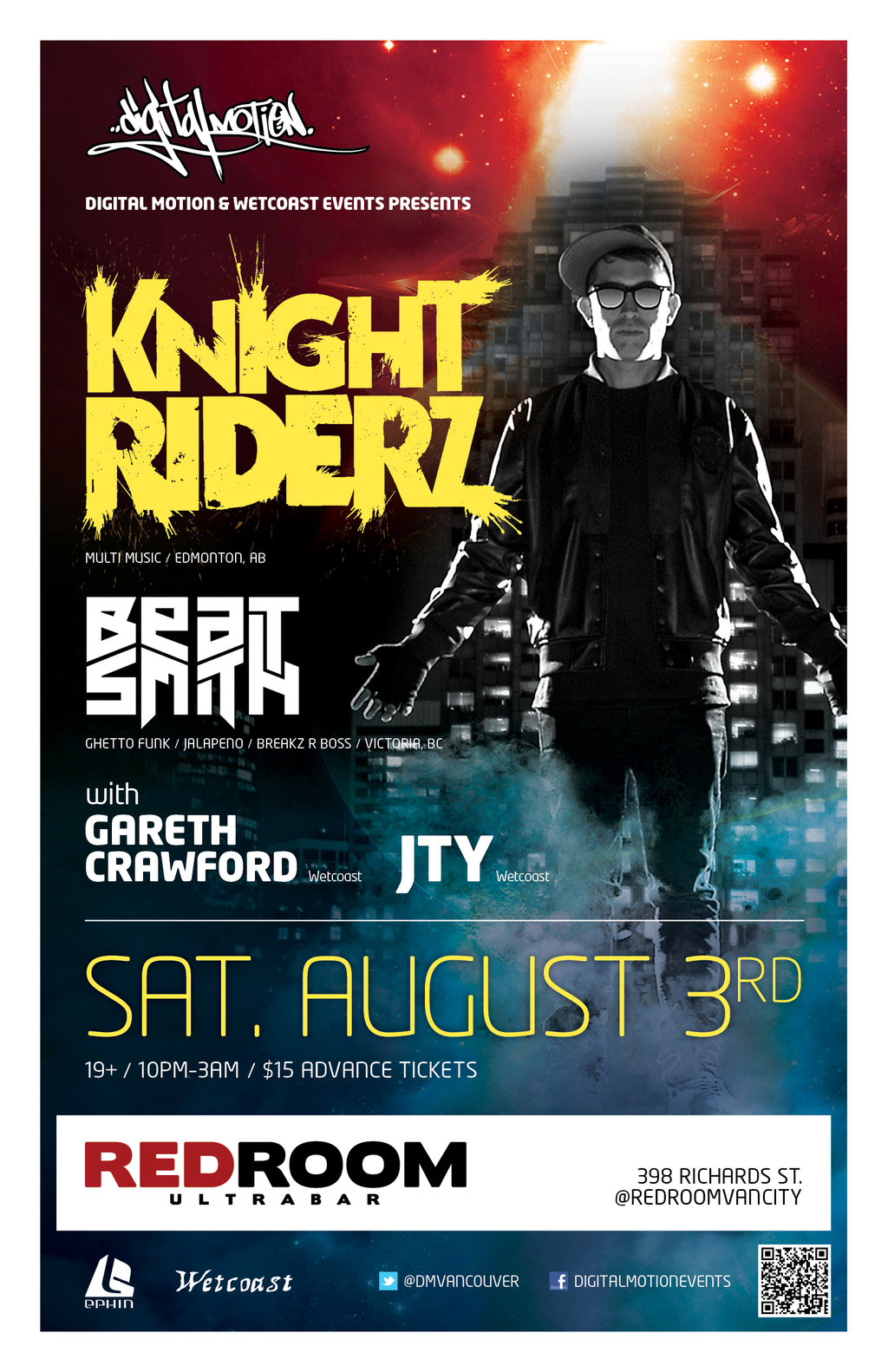 Digital Motion & Wetcoast are teaming up to present to you the solo Vancouver debut of Canadian Bass music DJ/Producer ★ KNIGHT RIDERZ ★ Muti Music / Edmonton, AB